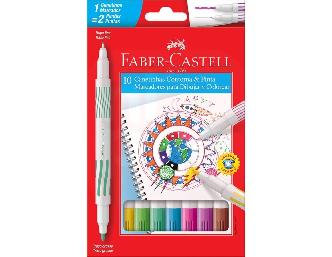 Canetinha Hidrográfica 10 Cores 2 Pontas - Faber-Castell